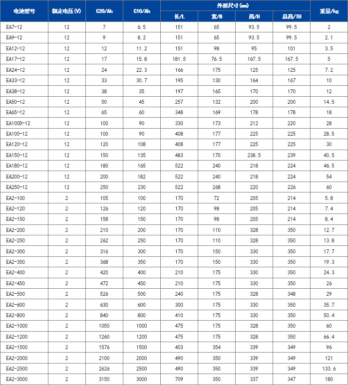 易智 EA 系列为通用型设计的阀控密封式铅酸蓄电池产品,具有容量范围广,型号多、密封安全可靠、内阻小、自放电率低、密封反应效率高等优点,广泛用于通信系统、电力系统、不间断电源(UPS)、太阳能系统、报警消防及安防系统等各种领域。